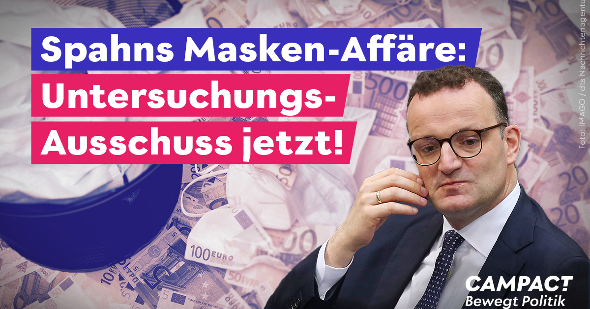 Spahn verpulverte Milliarden an Steuergeld. Wir fordern: Ein Untersuchungsausschuss muss die Maskenaffäre aufklären!